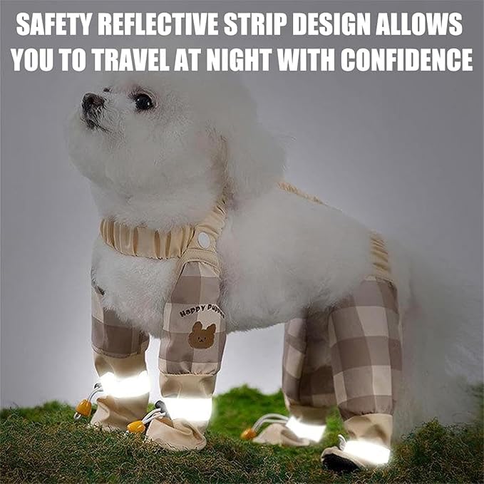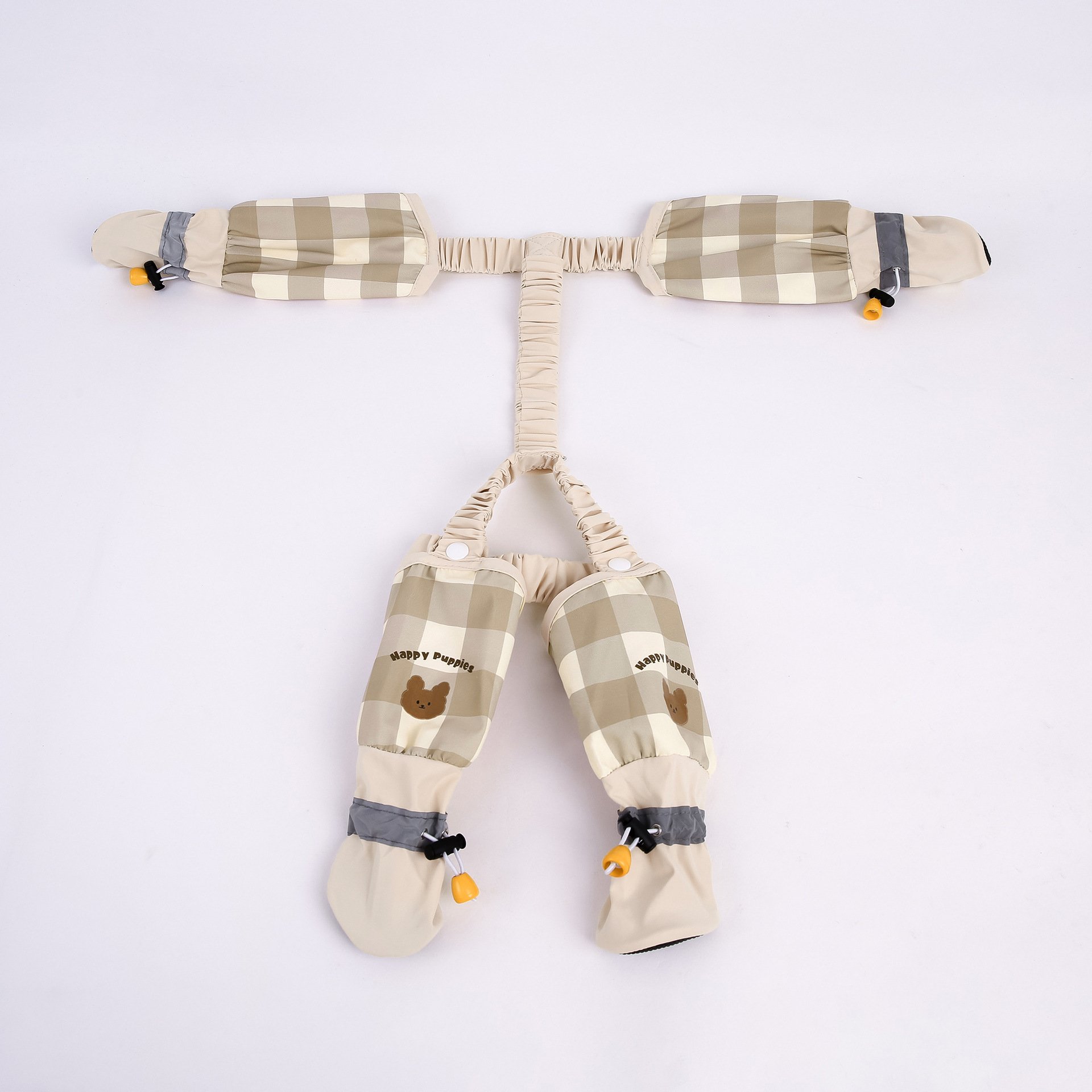 Made with waterproof taffeta, these pants let your pup run through wet grass or muddy paths without soaked fur. The cute gingham pattern + "Happy Puppies" patch adds playful style—post-walk cleanup is a breeze!